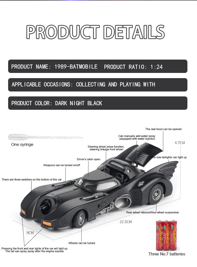 Be the first to review “1:24 Batmobile 1989 Classic diecast models car simulation batman chariot alloy car”