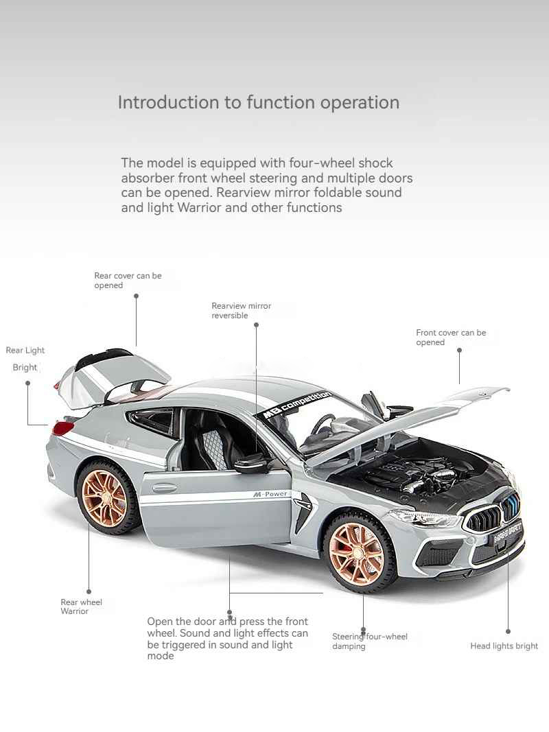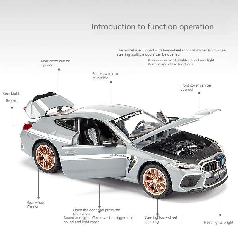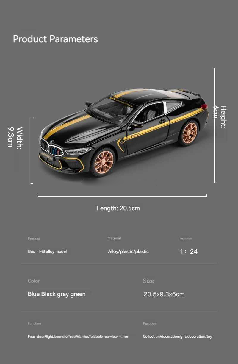 π 1:24 scale BMW M8 Competition in striking blue, perfect for gifts or hobby collections.