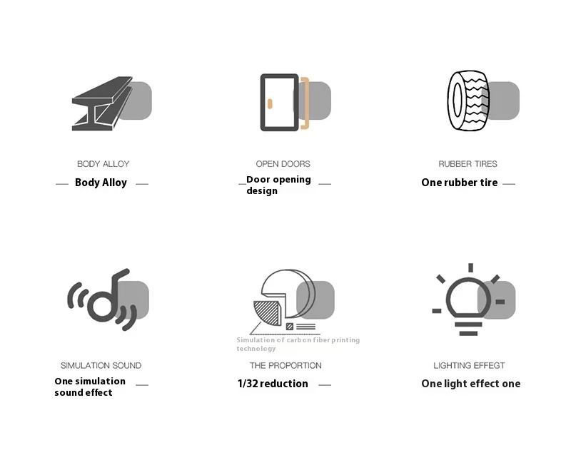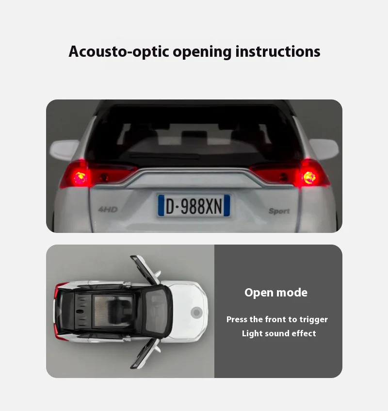 ⚡️Press the two wheels of the front car to trigger the engine sound and lights, and open the door to trigger the lights of the front and rear lights.